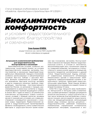 За 20 лет деятельности ассоциация при- Актуальность климатической проблематики нии при планировке, застройке, благоустрой-