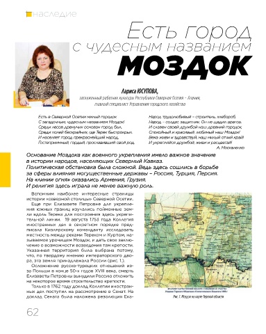 Е с ть в С ев ерной Ос е тии милый г оро д ок Народ трудолюбивый – строитель, хлебороб, , той основания Моздока (рис. 2). стороны Осетии – представители Алагирского и
