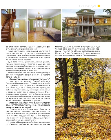 Болдино – родовое имение Пушкиных, ко- стоянная реставрация. Речь в первую очередь со старинным роялем, а далее – двери, как раз многое сделали к 800-летию города в 2021 году.