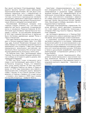 композиции здания – высокий четверик, кре- Второй ярус колокольни обходят полуколонны, графу Г. Орлову. От его сына В. Орлова, устано- №1 (16) 2024