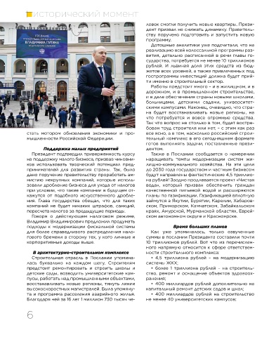ству поручено подготовить и запустить новую • 250 миллиардов рублей на модернизацию страктный набор предвыборных обещаний, а