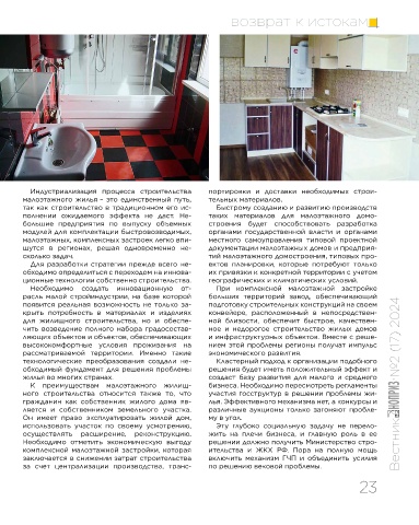 о найденных панацеях, о прекрасных качествен- доступным малоэтажное жилье, современным ционные технологии собственно строительства. географических и климатических условий.