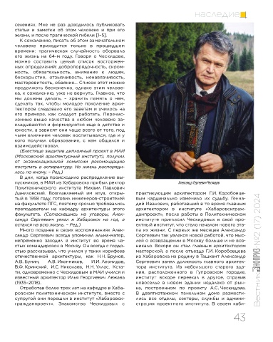The creative heritage of architect A.S. Cheskidov (1937–2000). Проект Байкал № 2 (68) ной части Хабаровска; есть они и в Комсомоль- супругой они перешли в институт «Хабаровск- лись все отделы, секторы, службы и админи-