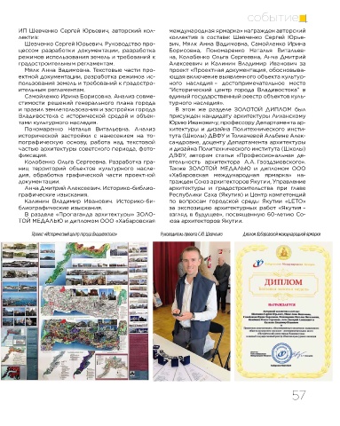 – направление «Архитектура». представлено. Проект «Исторический центр города Владивостока» Руководитель проекта С.Ю. Шевченко Диплом Хабаровской международной ярмарки