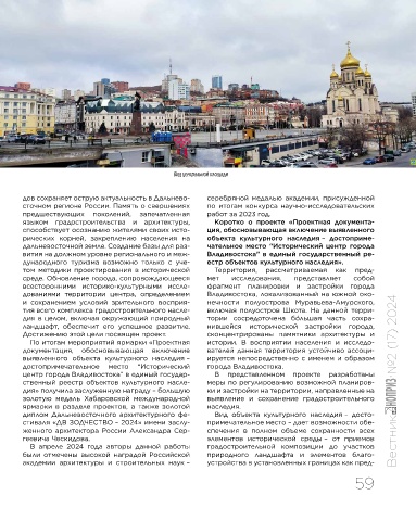 всего исторического центра города Владивостока вития на должном уровне регионального и меж- Владивостока” в единый государственный ре-