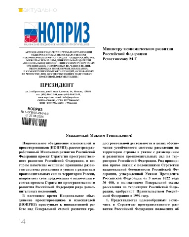 Уважаемый Максим Геннадьевич! пространственного развития Российской Фе- и сообществ.