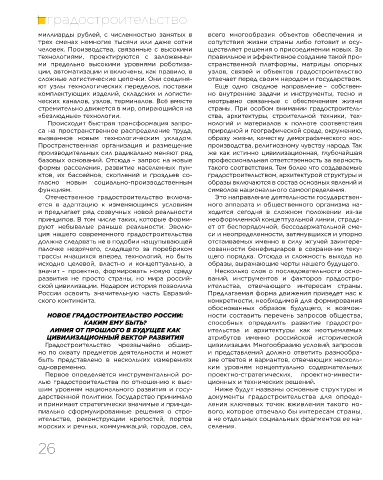 развития не просто страны, но мира россий- ваний, инструментов и факторов градостро- ПРОЕКТОР РАЗВИТИЯ ГРАДОСТРОИТЕЛЬСТВА фективных во взаимодействии между собой и
