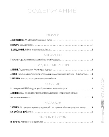 А. СЕДОВ. Строительный комплекс России в преддверии профессионального праздника – Дня строителя . . . . . . . 31