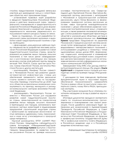 сии, Союза строителей России, институтов Мин- Завершением темы ИЖС стал доклад советни-