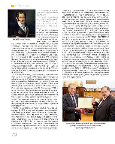 Дмитрий Васильевич Ухтомский своей истории, ее на- и МВТУ и объединены в единый Архитектур- памяти. Работающих в МАРХИ очевидцев этой тат современного обра-